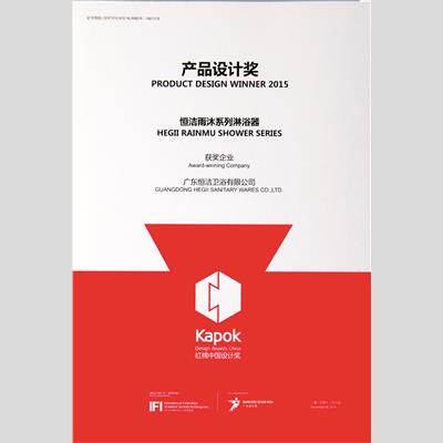 獎 項:2015紅棉獎·產(chǎn)品設(shè)計獎(恒潔雨沐系列淋浴器)