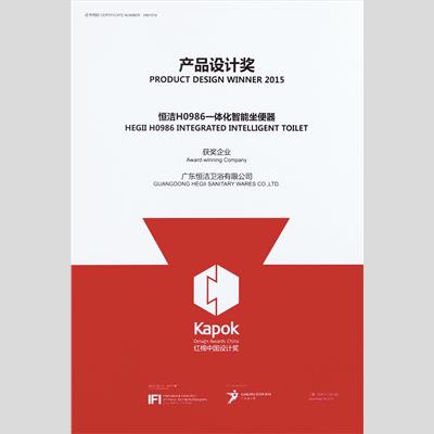 獎 項:2015紅棉獎·產(chǎn)品設(shè)計獎(恒潔H0986一體化智能坐便器)