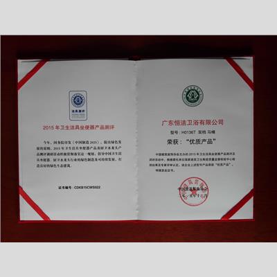 獎 項:2015年衛(wèi)生潔具坐便器產(chǎn)品測評 優(yōu)質(zhì)產(chǎn)品(單檔)【H0136T】