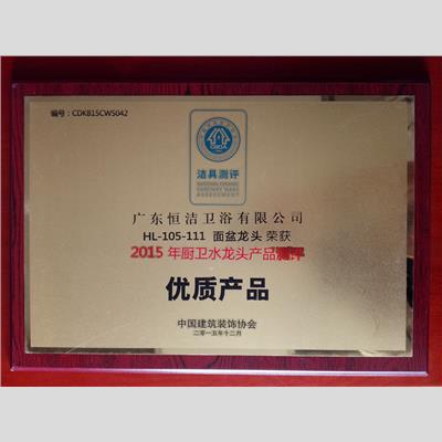 獎 項:2015年度廚衛(wèi)水龍頭產(chǎn)品測評 優(yōu)質(zhì)產(chǎn)品【HL-105-111面盆龍頭】