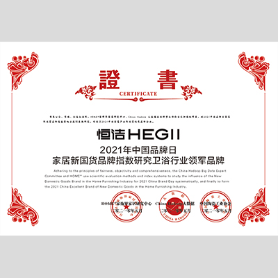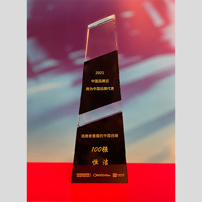 獎 項:消費者最喜愛的中國品牌100強-恒潔 (2021中國品牌日 我為中國品牌代言)