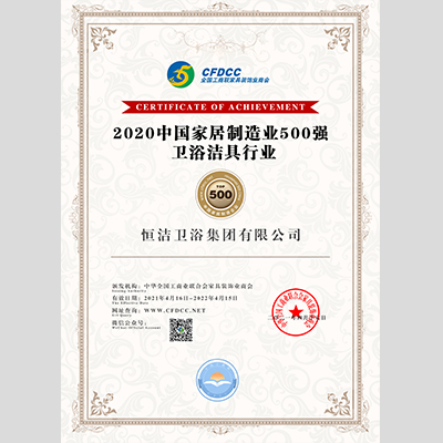 獎 項:2020中國家居制造業(yè)500強衛(wèi)浴潔具行業(yè)——恒潔