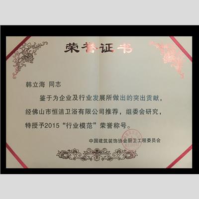 獎(jiǎng) 項(xiàng):2015行業(yè)模范(韓立海)