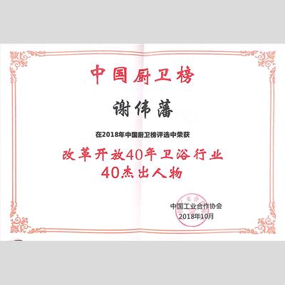 獎(jiǎng) 項(xiàng):改革開(kāi)放40年衛(wèi)浴行業(yè)40杰出人物