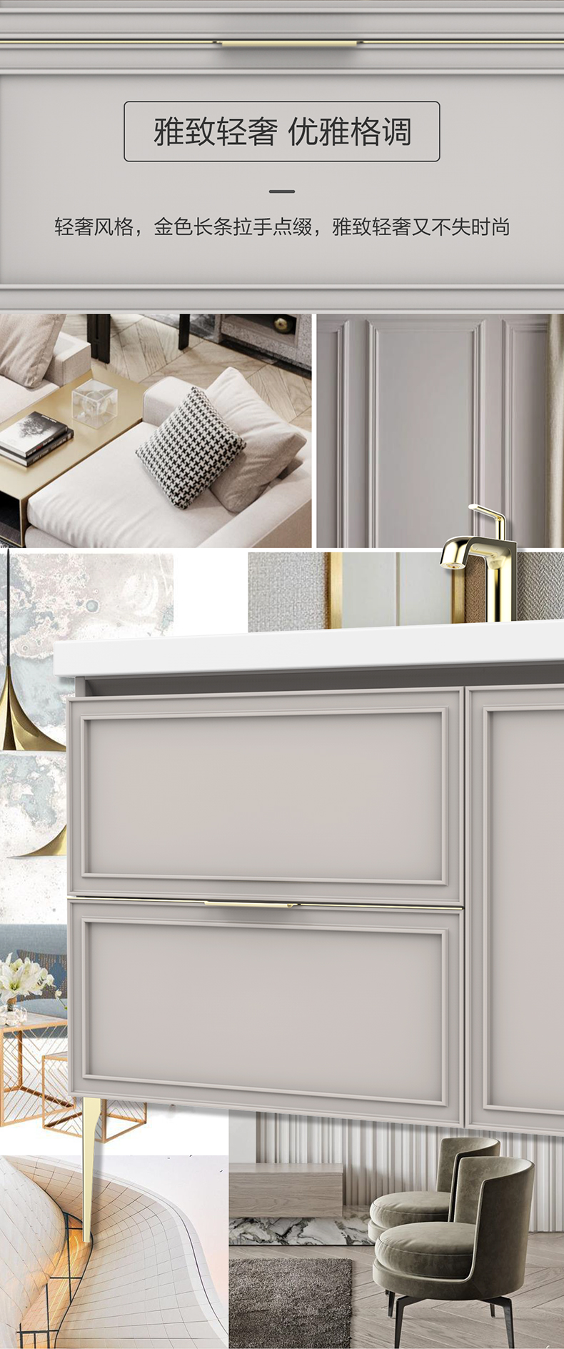 現代輕奢風格:金色長條拉手點綴,雅致輕奢又不失時尚
